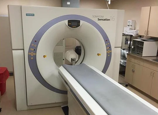 Our 64-channel configuration CT scanner boasts a specialized x-ray tube and rotation speed, facilitating rapid and precise scanning. This technology empowers us to perform non-invasive CT angiograms of the heart, brain, and other blood vessels, elevating our clinical capabilities to new heights.